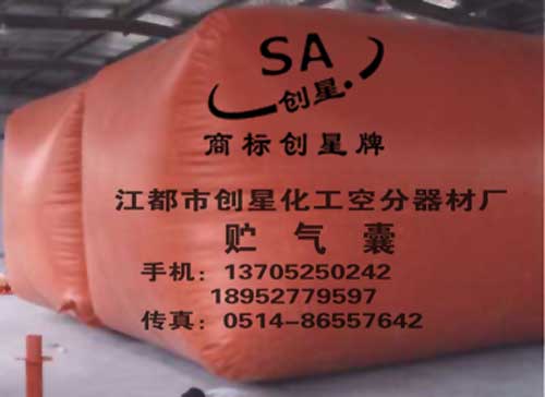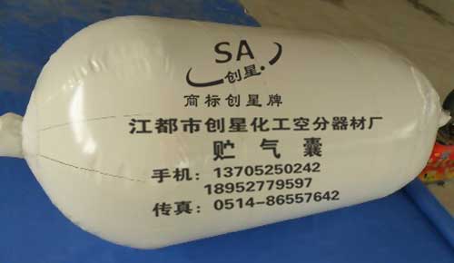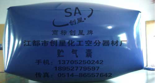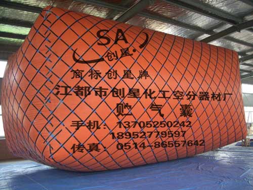 新研发的功能性贮气囊(袋)再次向新老客户推荐: 1. 正常规格有2、5、10、15、20、30、50、75、80、100、150、200、300、400、500、600、800、1000、12000、15000(立方米)。特殊规格形状可按用户图纸订制。负责办理包装和托运。 2.1999年研发的与进口同等质量技术的“二氧化碳”气囊,艳丽的色彩、先进的工艺,符合食品标准,牢固的高悬挂负重结构,已为多家啤酒高浓酿造CO2回收技术设备制造商主机配套,众多啤酒厂使用,价格仅为进口气囊的50%。 3.阻燃防火的“阻燃气囊”,抗静电防爆的“防静电气囊”,卫生材料的“医用氧气袋”,适用于氮气、氢气、氩气、天然气不同化学物质的各种专用贮气囊,耐酸碱、抗腐蚀气囊,乙炔、沼气、秸杆气等各种可燃化学气体的气囊。 4.大型并联组合节能节电氧气囊三组已在上海、重庆、昆明露天安装使用,规格1200—4800(立方米)。 5.创星牌“贮气囊”采用高强度、高气密性、抗老化、抗腐蚀性进口高分子基材,进口大型成套设备高压整体而成,其耐压强度分别为500、1000、2000、5000、8000、10000(mmH2O)。 注:所有出厂产品都免费赠送备用强力粘合剂和气囊基材。产品在使用过程中如有外力或严重超压造成破裂,本厂可进行返厂或上门维修。